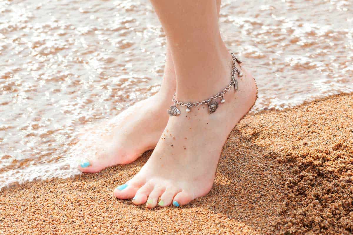 Ножные браслеты с кольцами на носке — это уникальный стиль. Вы часто увидите их на пляже или у бассейна вместо сандалий. Ножной браслет имеет петлю или кольцо, которое крепится вокруг одного пальца ноги и зацепляет цепь между пальцем ноги и петлей лодыжки. Вы можете увидеть их как поодиночке, так и в паре. Эти ножные браслеты можно сделать из металла, вышить бисером на эластичной нити или даже связать крючком.