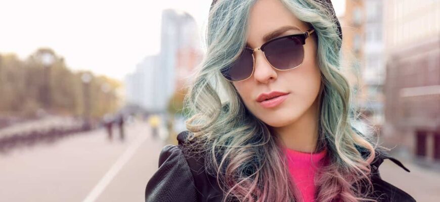 Этот образ превращает светлые волосы в яркое, мятно-зеленое омбре, создавая стиль, который будет одинаково уместен как в жаркие летние дни, так и в холодные зимние ночи.