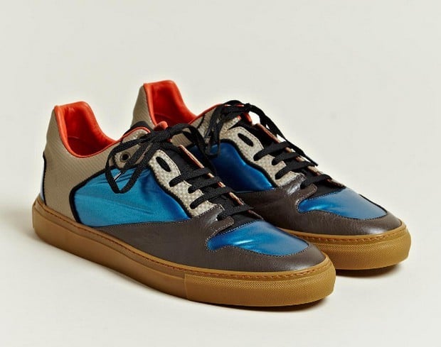 Обувь, получившая название Cosmonaute Low Trainers, имеет верх из смешанных материалов и цветов, таких как синяя металлическая ткань на мыске, пятке и панели, коричневая тисненая кожа с тиснением вдоль проушины и воротника и коричневая полнозернистая кожа вдоль носка. Я знаю, такое сочетание материалов и цветов довольно парадоксально, но выглядит очень хорошо.