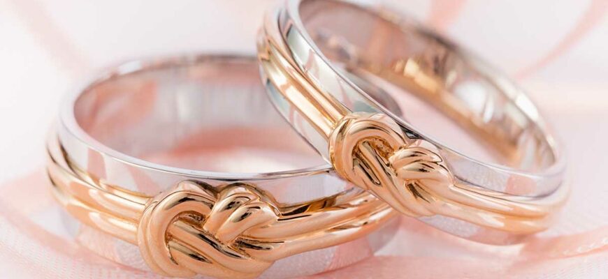 Кольцо с двойным узлом, по-видимому, возникло в древней кельтской цивилизации, хотя, похоже, они также использовались в Скандинавии и Великобритании. Эти кольца, сделанные из двух металлических нитей, образующих узел, часто использовались в свадебных церемониях для обозначения того, что двое становятся одним. Это классический дизайн, воплощающий идею единства, а непрерывная форма кольца символизирует вечность. Два изображения объединяются, чтобы создать мощный символ вечной любви.