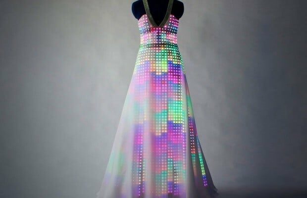 Это, вероятно, самое впечатляющее и привлекающее внимание платье, которое мы когда-либо видели. МилыйСхемаэто электризующее платье называется Аврора и это своего рода футуристическое платье, украшенное сотнями кристаллов Swarovski и ошеломляющими 10 000 светодиодов, которые действительно заставляют его ослеплять.