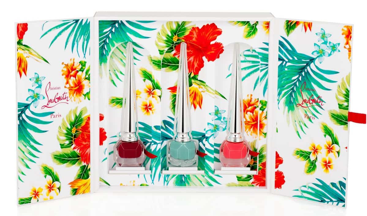 Набор Hawaii Kawai Limited Edition Nail Color Coffret 1, доступный за 90 долларов, представлен в следующих оттенках: Very Privé — глубокий винно-красный, Batignolles — что-то среднее между небом и бирюзово-синим и Miss Loubi — насыщенно-яркий кораллово-розовый.
