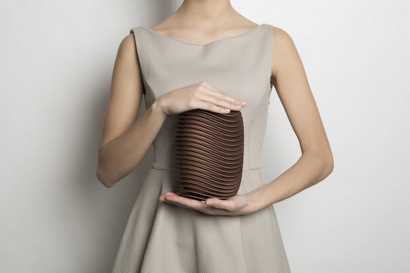 Этот потрясающий клатч, созданный для Maison 203, больше похож на напечатанную на 3D-принтере скульптуру, напоминающую извилистые и параллельные дороги швейцарской столицы, с последовательностью непрерывных извилистых линий, которые, несомненно, привлекут всеобщее внимание, куда бы вы ни пошли.