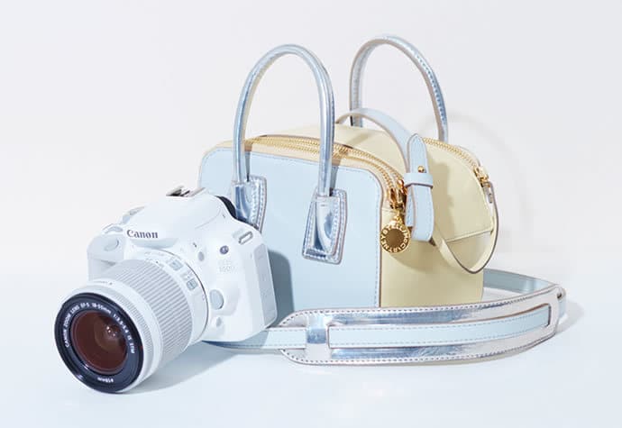 Эта модель, выпущенная ограниченным тиражом в 1000 экземпляров, продается вместе с цифровой зеркальной камерой Canon EOS 100D White, самой маленькой в мире цифровой зеркальной камерой. Его можно использовать не только для хранения фотоаппарата, но и как очень элегантную повседневную сумочку. Сумка в форме коробки, изготовленная из кожи Eco Alter Nappa, сочетает в себе матовые нейтральные тона и металлическую отделку, а благодаря регулируемому ремню ее можно носить как через плечо, так и в качестве ручной сумки.