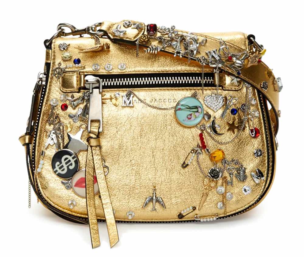 С этими новыми сумками Джейкобс, кажется, демонстрирует вдохновляющее чувство равновесия; стильный, смелый и современный, не нарушающий никаких границ. Сумки, которые вы видите здесь, по порядку: маленькая седельная сумка Marc Jacobs Charms and Trinkets, сумка-ведро Marc Jacobs Gotham City, большая сумка East West и седельная сумка, сумка через плечо Marc Jacobs J Marc с вышивкой Python и краска Marc Jacobs Splatter Paint. Седельная сумка.