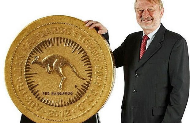 Любопытно, что крупнейшая, самая тяжелая и самая ценная монета в мире была недавно представлена Пертским монетным двором Австралии. Монета весом в 1 тон изготовлена из чистого золота 99,99% и стоит около 55 миллионов долларов по сегодняшним ценам. На лицевой стороне монеты нарисован кенгуру, а на оборотной — профиль королевы.