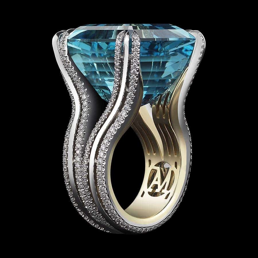 Как и все цветные камни, аквамарины выглядят потрясающе в сочетании с белыми бриллиантами, как вы можете видеть ниже. Коктейльное кольцо из коллекции Sarah Ho для William & Son отличается элегантным сочетанием ограненного овального аквамарина огранки «кабошон» и завитков сверкающих бриллиантов, создающих легкое легкое впечатление.