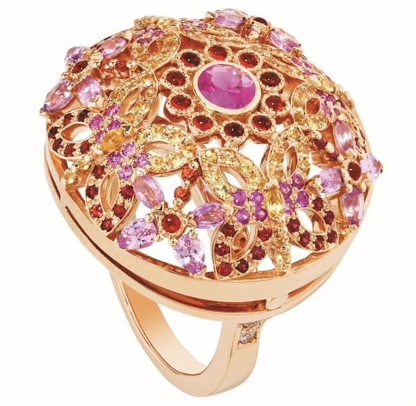 Мотив бабочки, напоминающий древний миф о родственных душах, является данью уважения Психеи, прекрасной принцессе, которая привлекла внимание самого Бога Любви, Эроса (Купидона). Ailes de Psyché (англ.Крылья Психеи) представляет собой искусно выточенное изделие с кружевным золотом, создающим ажурную работу, в которой металл деликатно подчеркивает серию разноцветных драгоценных камней.
