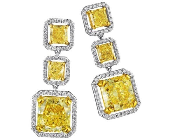 Серия Audrey, вдохновленная элегантной и красивой Одри Хепберн, включает в себя пару серег с двумя овальными фантазийными желтыми бриллиантами и 84 круглыми прозрачными бриллиантами, колье с одним фантазийным желтым бриллиантом в форме сердца, одним круглым бриллиантом и 71 круглым фантазийным бриллиантом. желтые бриллианты.